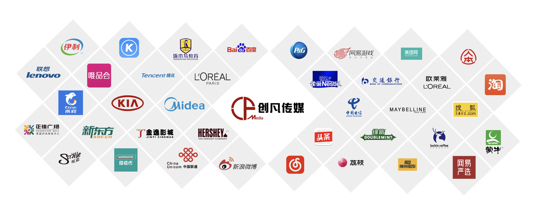 公司以“做品牌年輕化的好幫手”為使命,憑借敏銳的創(chuàng)意洞察、卓越的營(yíng)銷策劃能力、豐富的活動(dòng)經(jīng)驗(yàn)和全方位的媒體資源,為企業(yè)提供高效、精準(zhǔn)的一站式營(yíng)銷推廣服務(wù)。已成為寶潔、騰訊、京東、中國(guó)聯(lián)通、字節(jié)跳動(dòng)等世界500強(qiáng)品牌庫(kù)內(nèi)供應(yīng)商。
